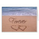 Two intertwined hearts on a sandy beach with forever in script font. Fun design for the destination wedding couple.