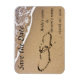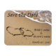 Beach theme save the date magnets with two hearts in the sand. Easy to use template - just enter the names of the Bride & Groom, along with the wedding date in the space provided.