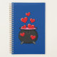An illustration of a cute cartoon black cauldron where a witch is making a spell for love potion full of red hearts for valentine's day. This cute magical love design is a gift idea for witchcraft and magic lovers and hearts day lovers.