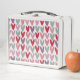 This is a standard metal lunchbox that appears to work just fine. We designed this box ourselves with an uploaded photo and custom text on the front and back. It looks absolutely beautiful except the front of the lunchbox is not centered like it shows in the photo. The print borders don't align with the inset flat part of the box where the preview photo online showed it perfectly centered in there. The back looks nice and centered though.