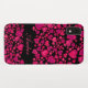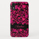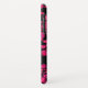 A unique and elegant stylised hearts patterned iphone case in hot pink and black. Personalise this item with your name. Currently reads: Amber. This original pattern is designed by Sarah Trett. www.sarahtrett.com