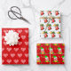 Hearts, Stockings and Christmas Elf on Red Wrapping Paper Sheet