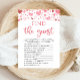 Make your Valentine Sweetheart Baby Shower extra fun with this Watercolor Cute Pink Red Hearts "Find the Guest" Baby Shower Game! Featuring a charming pink and red heart design, this interactive game encourages guests to mingle and find others who match the listed traits. A perfect icebreaker to spark conversations and laughter, making the celebration even more memorable. Ideal for a baby girl Valentine's-themed shower! 💕🎀 #BabyShower #FindTheGuestGame
