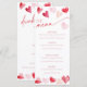This Bridal Shower menu with red and pink watercolor hearts is perfect for a Valentines Day Hen Party.