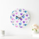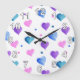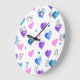 Hearts Watercolor Dots Pink Blue Purple Large Clock