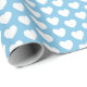 A wrapping paper with white hearts on a light blue background. You can choose the background colour of your preference.
