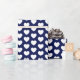 A wrapping paper with white hearts on a navy blue background. Customise the background colour among other options.