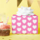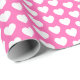 A wrapping paper with white hearts on a pink background. You can choose the background colour of your preference.