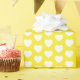 A wrapping paper with white hearts on a yellow background. Customise the background colour among other options.