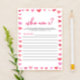 Hearts Who Am I? Bridal Shower Game Stationery