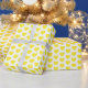 A wrapping paper with yellow hearts on a white background. Customise the background colour among other options.