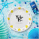 These awesome yellow hearts add a sparkling touch to your special occasions. It may be a birthday, an anniversary, Valentine's Day, even a housewarming party or for your business. You can change the word "love" for another word or add eight different words. Add text and a logo/image in the center. This design is available in various colors. There's a design without the text and the logo/image in the center. Available matching paper napkins and cups.