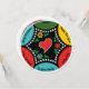 "Hearty Portuguese Christmas" illustration—a circle adorned with flowers, foliage, and playful semi-circles, in vibrant and joyous hues, round like a Christmas ball or bauble. This motif pays homage to the cherished Portuguese Rooster, infusing the festive season with its unique charm.