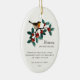 Heaven and Nature Sing Winter Bird on Holly Ceramic Oval Christmas Ornament... A sweet winter bird perches atop colourful sprigs of red holly berries on our vintage style oval ceramic Christmas ornament with the heading "Heaven and Nature Sing" in script and classic serif typography. A heartfelt Christmas greeting reads: "Wishing you peace, love, and joy this holiday season and throughout the coming new year." Personalise with your signature and year just below the holiday wishes. All text can be easily revised on the personalisation template.