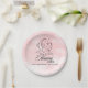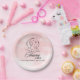 A little bit of heaven is on the way! These pastel pink watercolor paper plates showcases modern script typography adorned with stars, clouds, and a celestial moon. Personalise the text with baby mama's name and date for your girl baby shower.