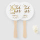 Elegant white and gold heaven sent theme baby shower hand fan featuring a typography text in faux gold glitter. Great for a gender neutral party for a Christian family.