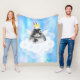 Heavenly Bliss: Grey and White Bunny on Cloud with Fleece Blanket
