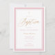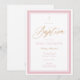An elegant baptism invitation featuring a classic gold cross and pastel pink borders.
