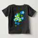 Adorable cartoon of three hula girls dancing surrounded by a floral lei.This design is available in another colorway as well. This original cartoon adorns these infant creepers and t-shirts on the front with a companion print of a cluster of flowers on the back. These designs come in several colorways.