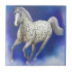 Original fine art painting of a galloping leopard appaloosaa horse by artist Carolyn McFann of Two Purring Cats Studio on a quality ceramic tile for horse lovers.