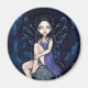 Heavenly Nightshade - a darkly beautiful fairy sitting atop a gothic column in front of a luminous night sky. My own original acrylic painting.