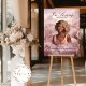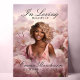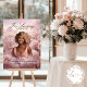 Celebrate the life of your loved one with this beautiful funeral welcome sign. Featuring an array of pink flowers set against a serene sky and clouds, perfect for a heartfelt and peaceful memorial tribute.