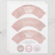 Two cupcake wrappers and toppers have royal crowns. One wrapper says “Princess” and one topper says “Happy birthday”. You get a total of three different cupcake wrappers and three different cupcake toppers. Cut out each wrapper and secure around cupcakes. Attach toppers to toothpicks or small candy sticks. Contact me if you want additional products designed for this collection.
