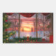 Sitting by the Christmas tree looking out the window on a snowy landscape watching the sunrise on Christmas morning.