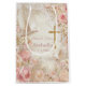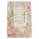 Present your thoughtful gifts with an extra layer of divine elegance using the Heavenly Blush & Gold Quince personalised gift bag. This beautiful bag features a serene and spiritual design with soft blush tones, delicate floral accents, and shimmering gold details. The beautiful illustration includes a magnificent golden cross and two graceful doves in flight, making it a perfect symbol of faith and devotion. It's the ideal way to make your presents truly shine and leave a lasting impression.
