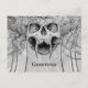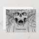 A dark and macabre greeting card featuring a heavy metal-inspired vampiric death skull.