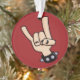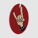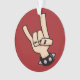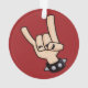 Heavy metal, rock and roll, devil horns hand sign with a black leather studded bracelet.