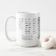 The mug is great quality and stands up to heavy use and repeated washing. The design is unique and perfect for linguists and philologists. However, the table is smaller than it looks on the website, and it's difficult to make out the characters and column titles.