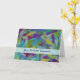 This greeting card has an abstract digital impressionist painting in turquoise blue, purple and other pastel colours as well as a stripe with the Hebrew birthday expression: “Yom Huledet Sameach.” This card is an elegant mailing item to send to your loved ones. You can also match it with stickers, envelops, and stamps.