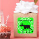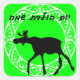 Cute black silohuette of a moose against a bright green background and encircled in a vintage style circle. The words, "Yom Huledet Sameach" (Happy Birthday in Hebrew) match the black silohuette.