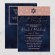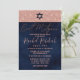 Hebrew Rose Gold Navy Glitter Paint Bat Mitzvah Invitation