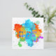 The Hebrew word "shalom" (meaning 'peace' but also 'hello') in an artsy form over a colourful paint splashes background.