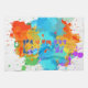 The Hebrew word "shalom" (meaning 'peace' but also 'hello') in an artsy form over a colourful paint splashes background.