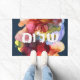 The Hebrew word "shalom" (meaning 'peace' but also 'hello') in an artsy form over a colourful watercolor background.