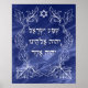 Hebrew Shema Baroque Border on Blue Paint Art Poster