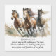 Inspirational quote Christian scripture magnetic card depicts a beautiful nature watercolor with three magnificent horses running. It features a portion of an encouraging Bible Verse Hebrews 12 1-2, "Let us run with endurance the race that is set before us, looking unto Jesus, the author and finisher of our faith."