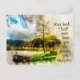 Beautiful artistic custom postcard depicts a boat in a lake surrounded by nature and features Bible Verse Hebrews 13:5 in the words of Jesus, I will never leave you nor forsake you. The back prayer can be modified to the greeting of your choice._