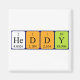 Heddy spelled out as He D D Y (Helium Deuterium Deuterium Yttrium) on a magnet for the scientist in you.