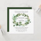 A beautifully elegant botanical wedding invitation with a gemetrical frame theme design in watercolor green greenery and classic grey font with chic calligraphy accent. Your names appear in grey lettering, framed by a geometric lush ivy leaves, snowberry and eucalyptus foliage on a crisp white background.