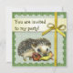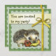 Wonderful invitations with an adorable hedgie. "It's mine now!" Gorgeous little hedgehog happy with his lucky find - a core of an apple:) From an original oil pastel illustration by Tanya Bond
