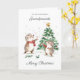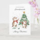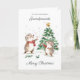 This design features a watercolor illustration of joyful hedgehogs in front of the Christmas tree.