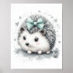 Cute hedgehog in black and white with a touch of a mint green colour on the ribbon.