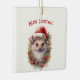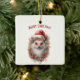 Hedgehog in a Santa Hat Red Poinsettia Christmas Ceramic Ornament