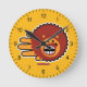 The clock did not take as long to arrive as I thought it might and was extremely well packaged. I didn't do the measurements so I didn't realize it is a little smaller than the average clock but that does not matter (just make sure you check if that's important to you).It is really nifty! It seems very solid and well made not flimsy at all. It has been going well and has kept good time in its few weeks on my wall. Nice product. Gets noticed too! Nicer in real life than the picture but true to the picture