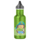 A cute water bottle for kids (boys or girls) with a cartoon hedgehog holding a soccer ball under its arm . Personalise it with your child's name .