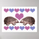Hedgehogs in Love Folk Art Style Hearts Poster